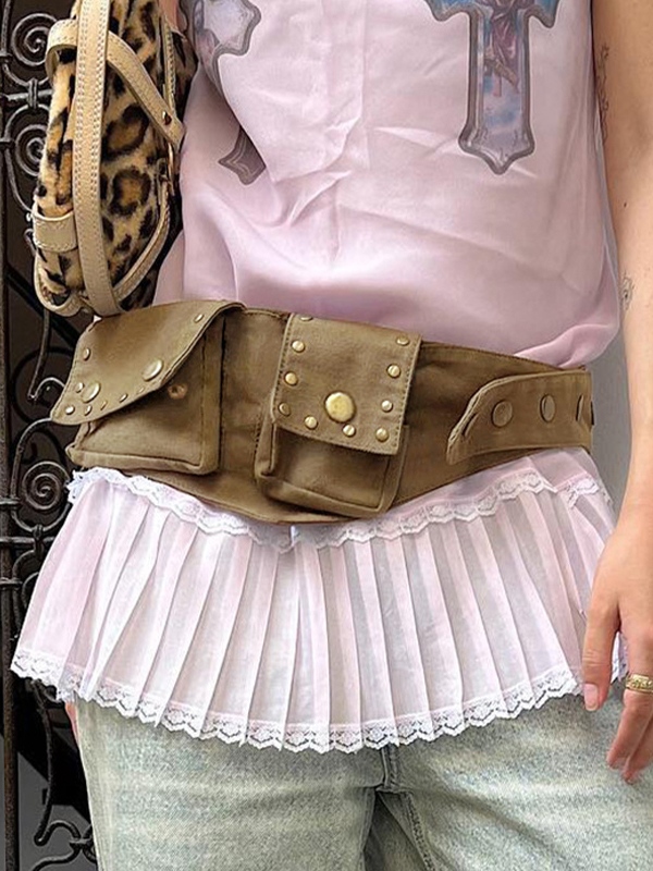Grunge Rivet Decor Engraved Buckle Thin Belt