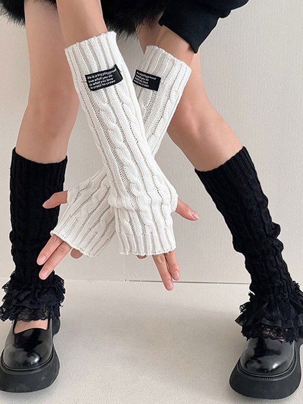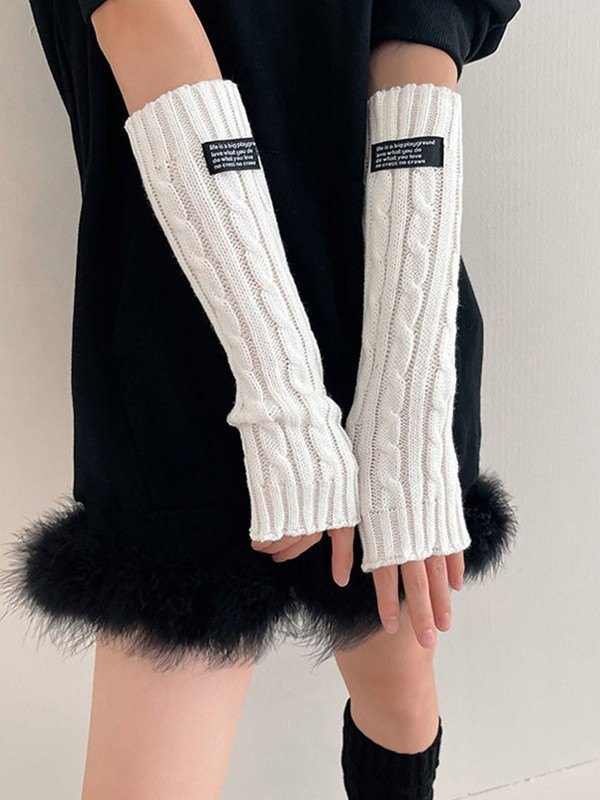 Faux Fur Trim Cable Knit Fingerless Gloves