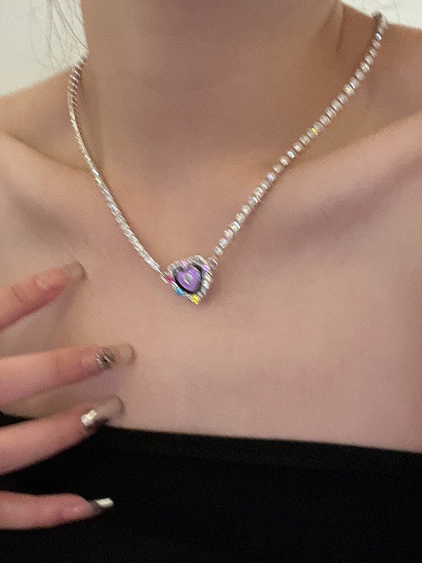 Rhinestone Heart Charm Necklace
