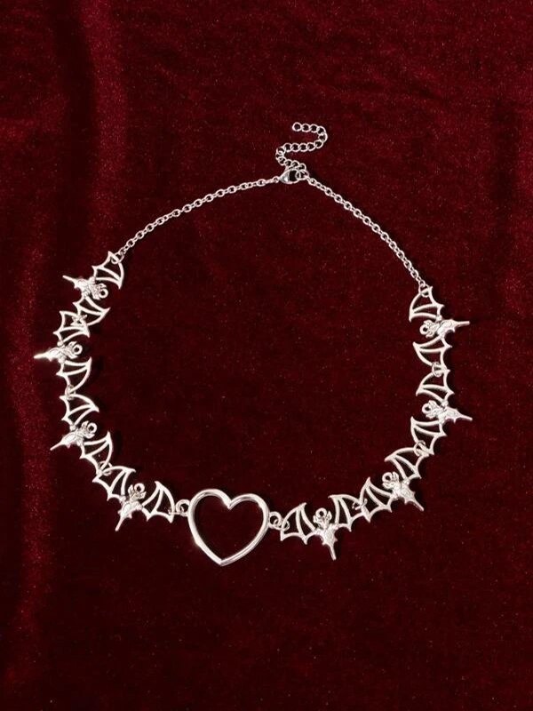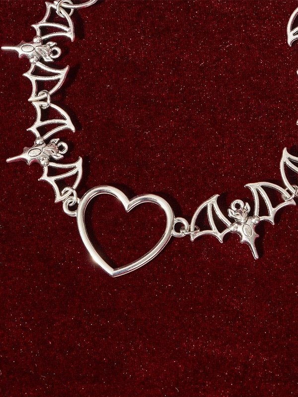 Gothic Bat Heart Charm Necklace