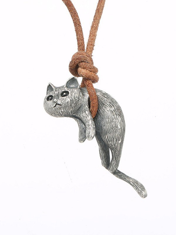 Cute Cat Pendant Rope Necklace