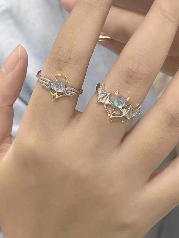 Angel Devil Stone Cuff Ring