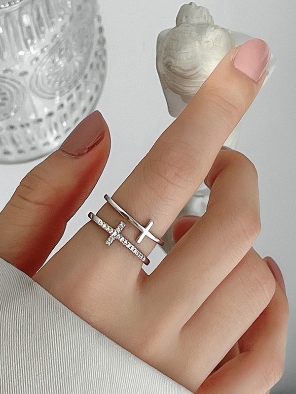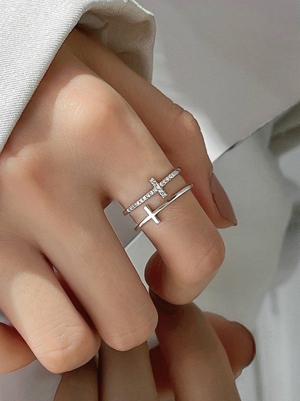 Rhinestone Dual Cross Cuff Ring