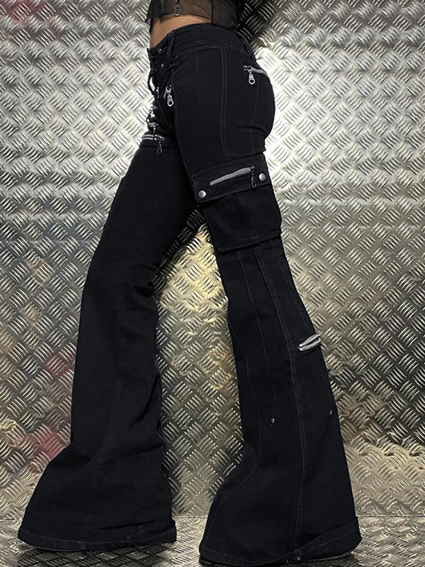 Metal Zipper Decoration High Waist Slimming Flare Jeans