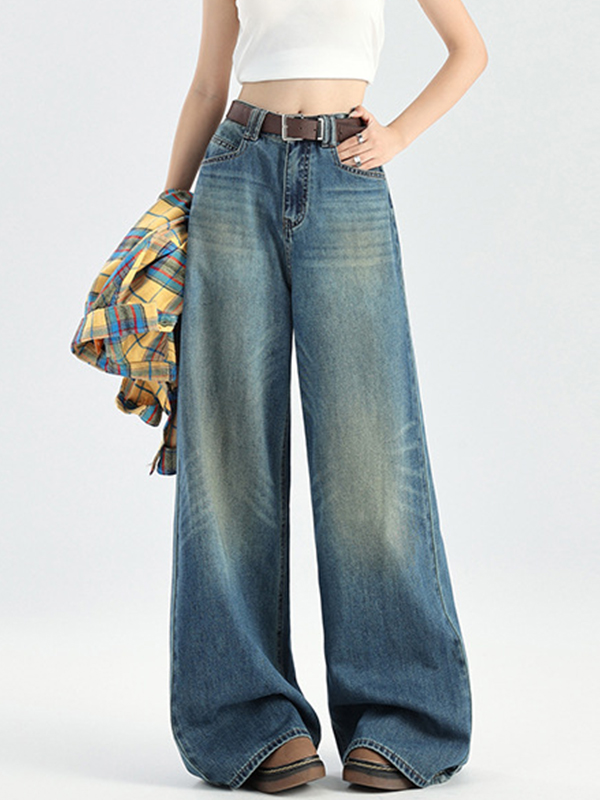 Washed Distressed Dangle Mopping Boyfriend Jeans