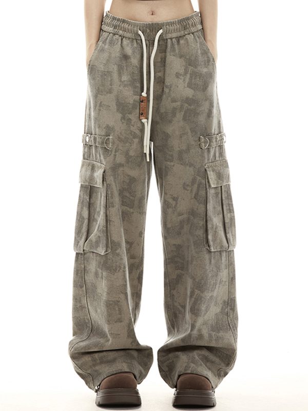 Men’s Vintage Distressed Wash Multi Pocket Cargo Pants
