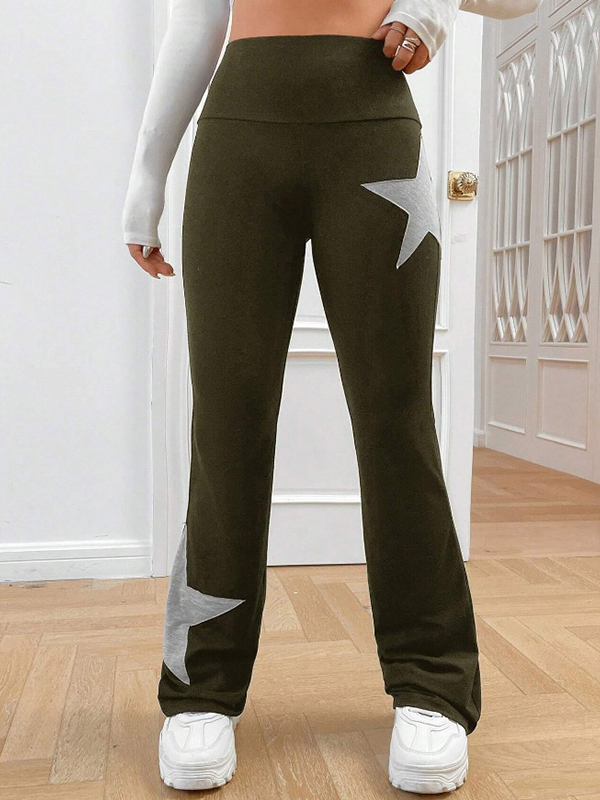 Star Print Highly Elastic High Rise Flare Leg Pants