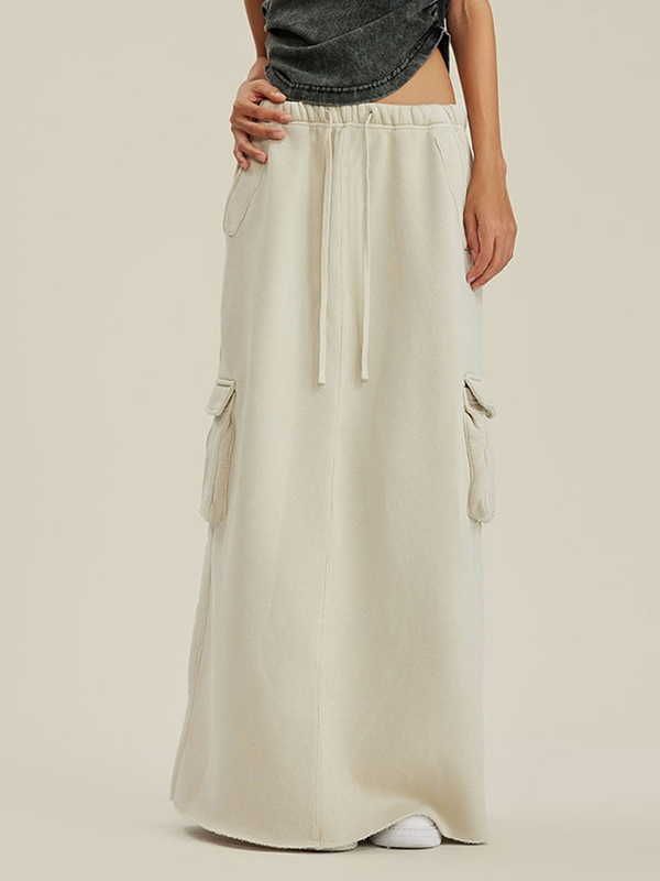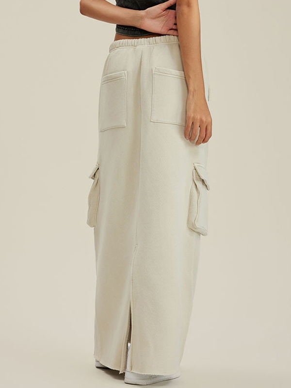 Multiple Pocket Back Slit Cargo Maxi Skirt