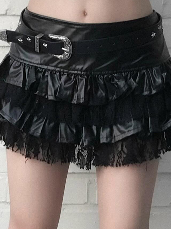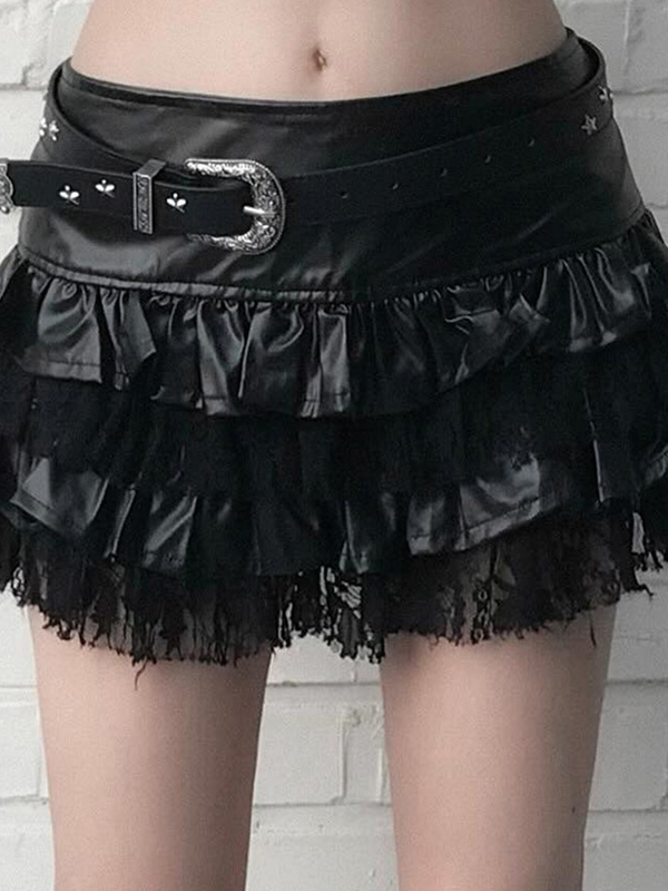 Leather Patchwork Lace Mini Skirts