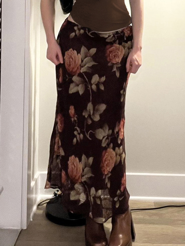 Gentle Floral Print Maxi Skirt