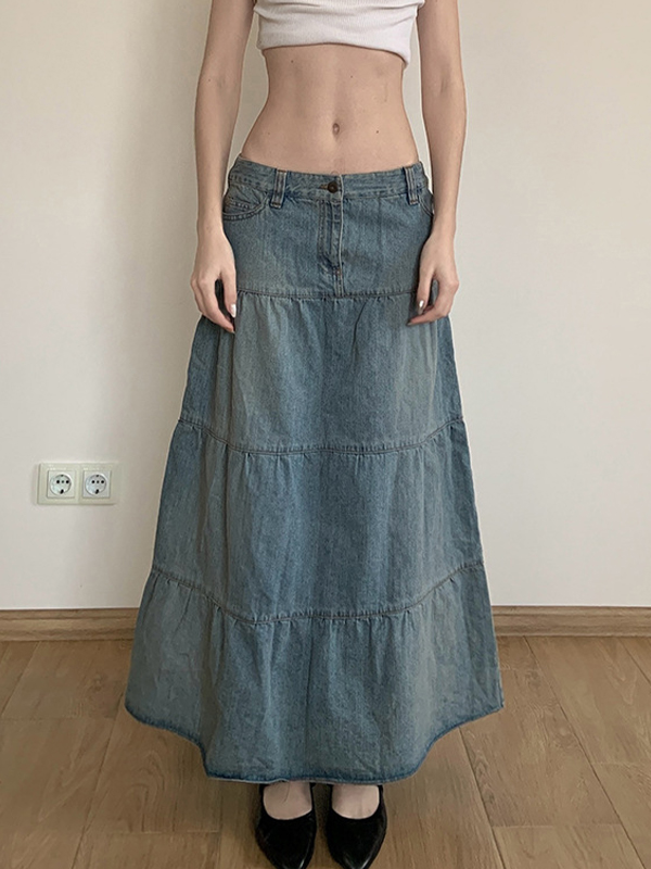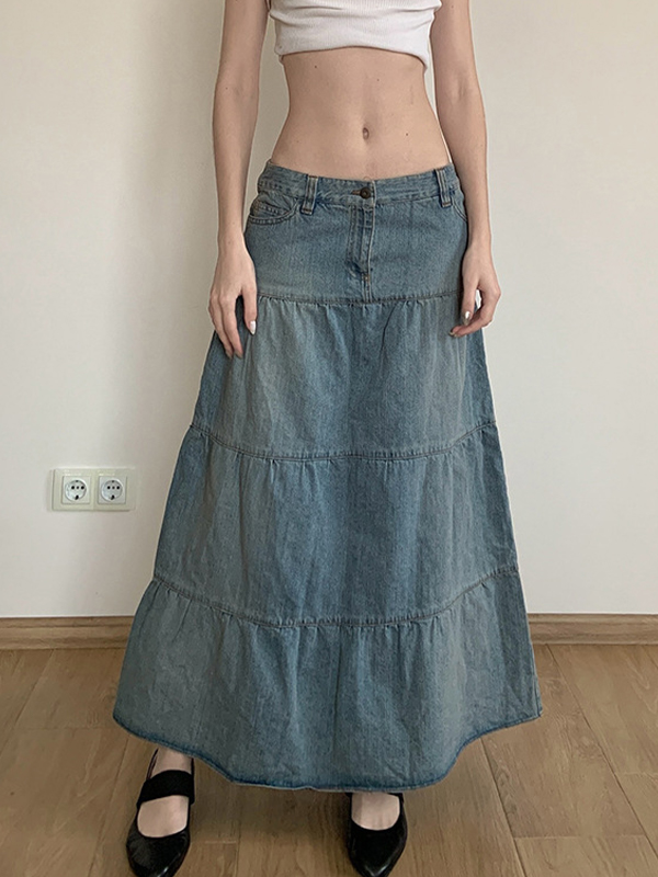 Low-Waisted Old-Fashioned Holiday Style Maxi Skirt