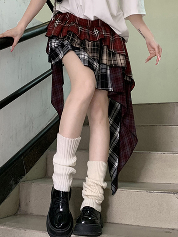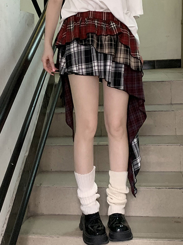 Irregular Splicing Of Sweet Spicy Plaid Maxi Skirts