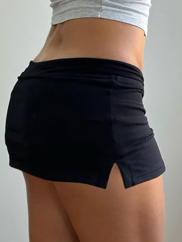 Drawstring Slit Solid Color Mini Skirts