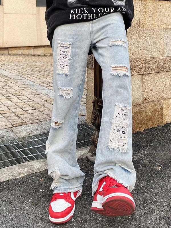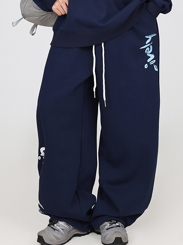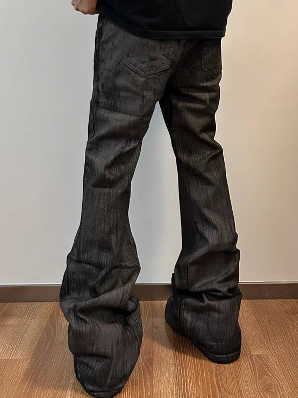 Vintage Yellow Mud Letter Loose Straight Jeans