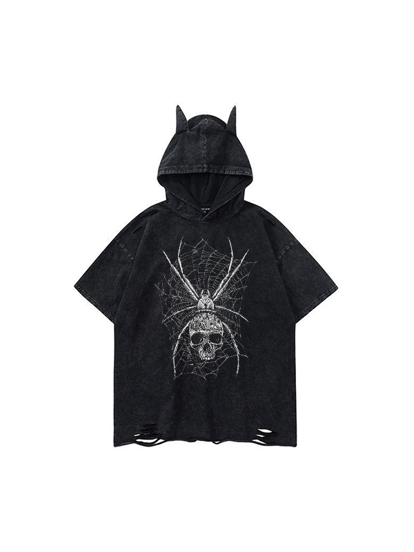 Men’s Hip Pop Distressed Skull Print Oversized Hoodie