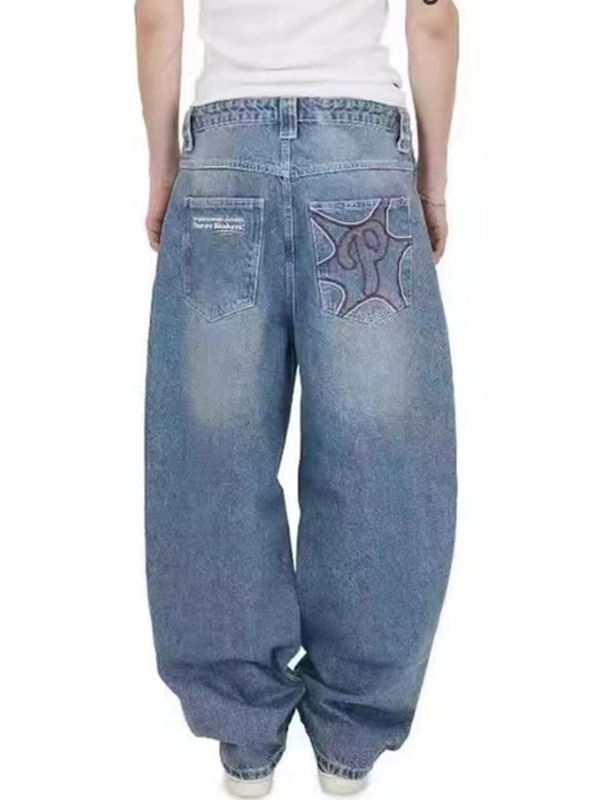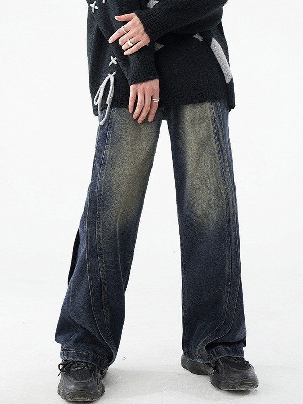 Men’s Vintage Wash Splice Loose Jeans