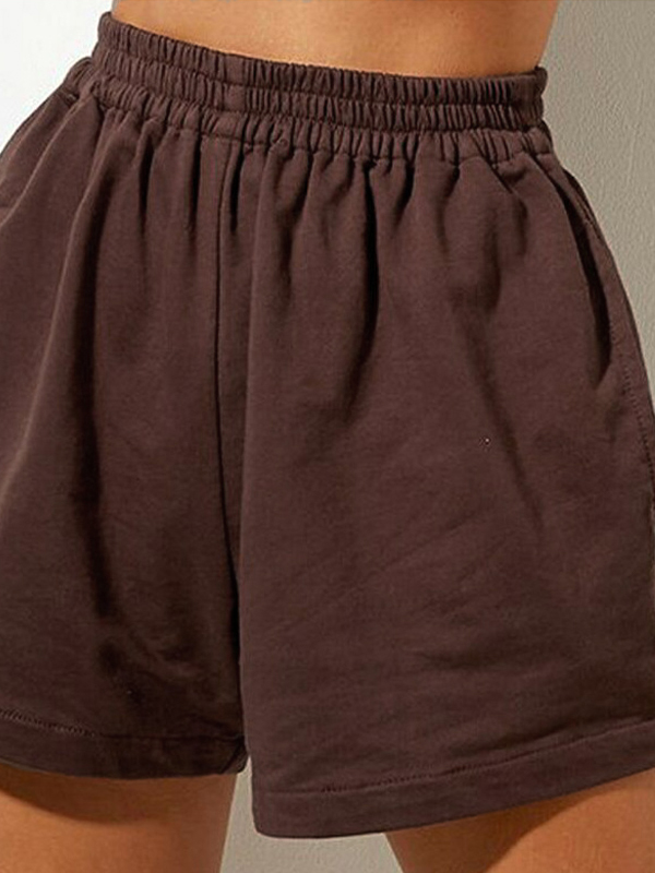 Solid Elastic Waist High Rise Shorts