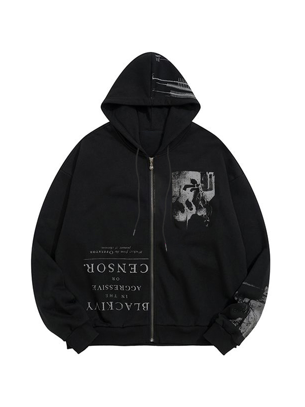 Men’s Letter Skull Graphic Zip Up Hoodie