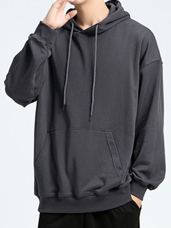 Men’s Solid Color Pure Cotton Drop Shoulder Oversized Hoodie