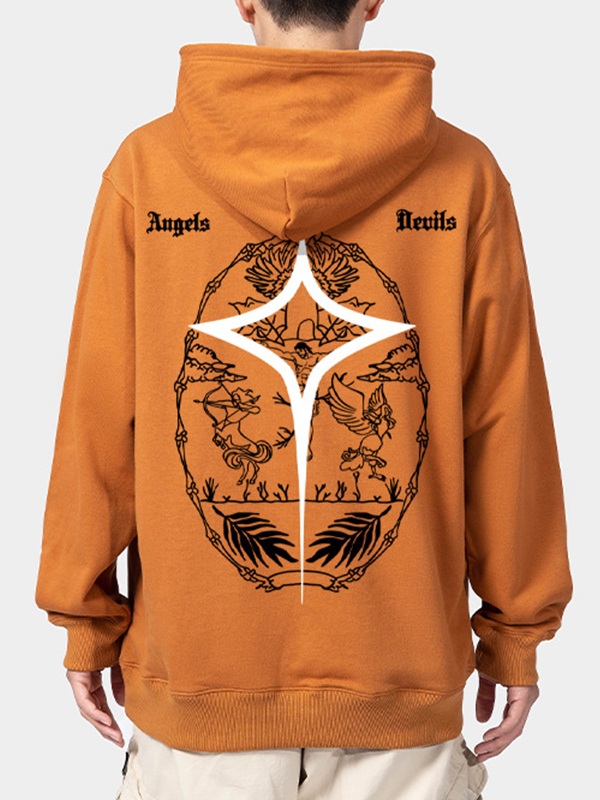 Men’s Hip Pop Letter Heart Print Oversized Hoodie