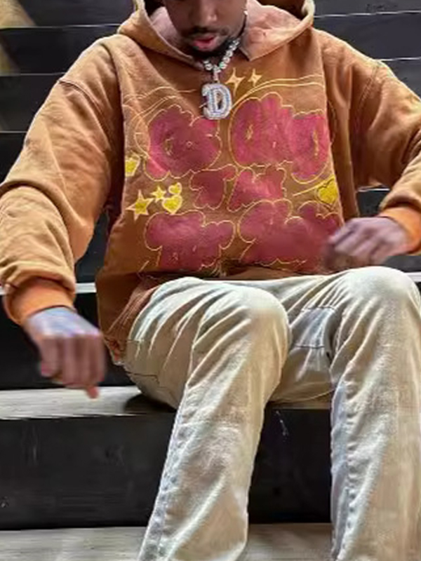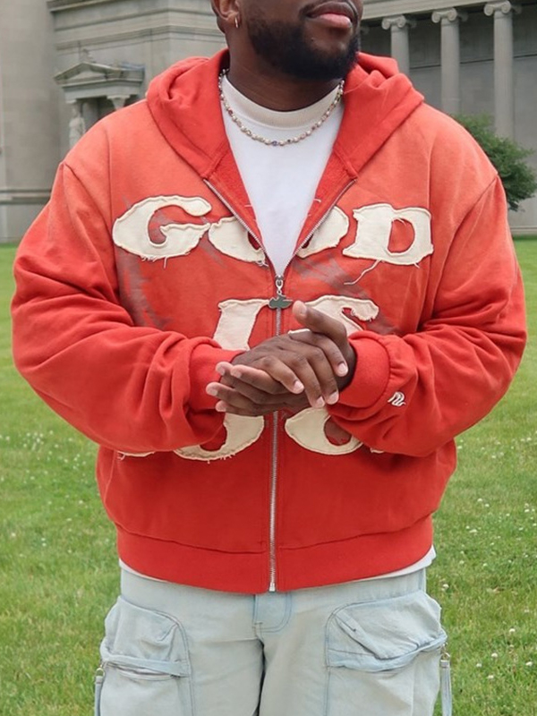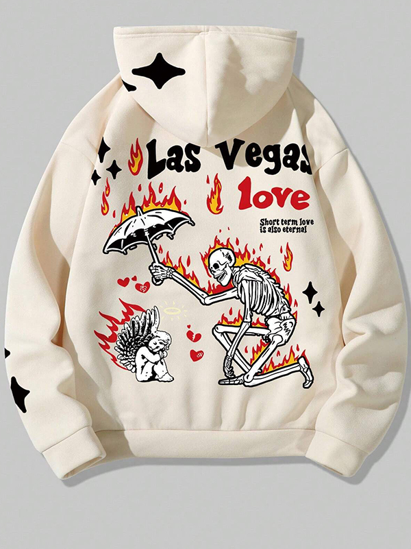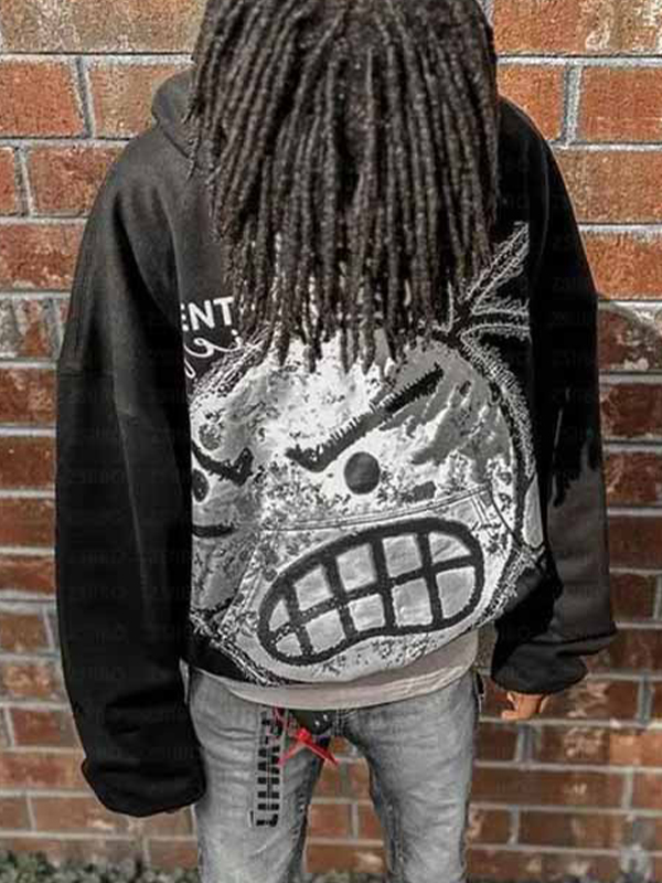 Men’s Street Letter Print Double Hat Oversized Hoodie