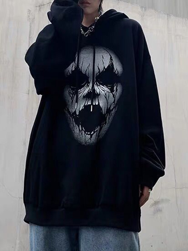 Men’s Hip Pop Skull Print Oversized Hoodie