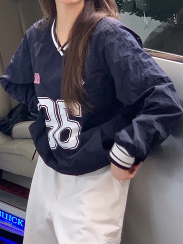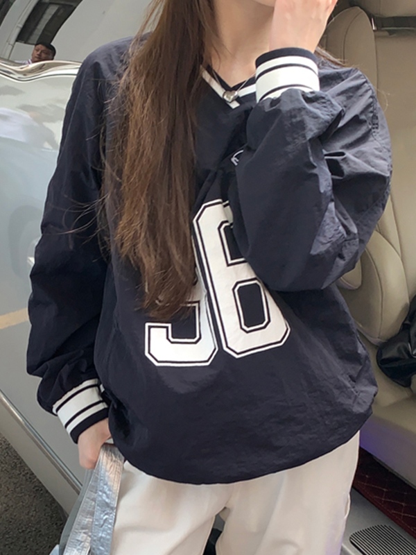 Number Print V Neck Thin Sweatshirt