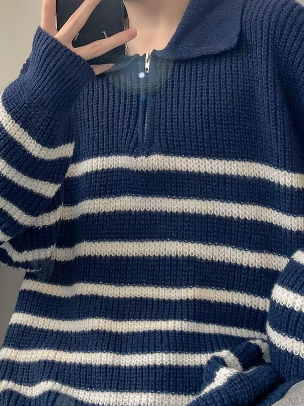 Men’s Letter Heart Jacquard Crew Neck Knit Sweater