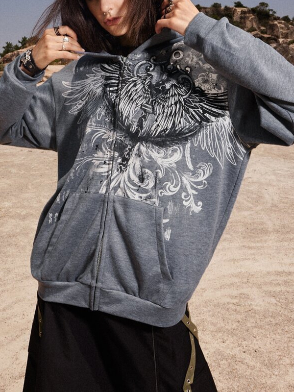 Vintage Butterfly Print Zip Up Oversized Hoodie