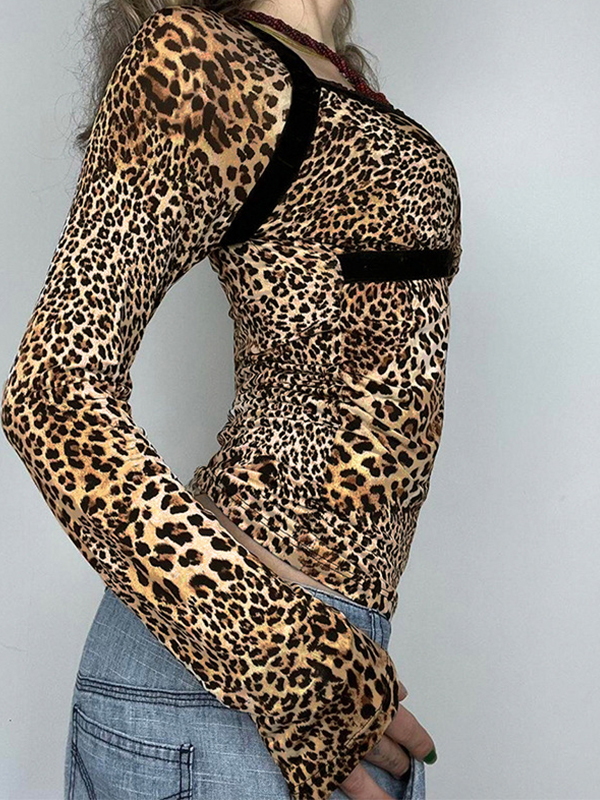Leopard Print Long Sleeves Tee