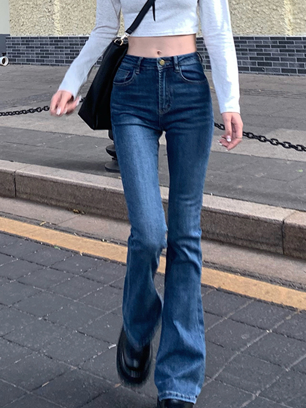 Vintage Blue Wash High Rise Slim Flare Jeans