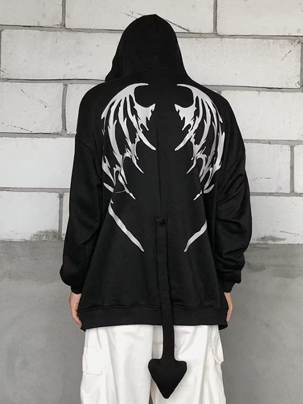 Men’s Devil Styling Wing Print Fleece Oversized Hoodie