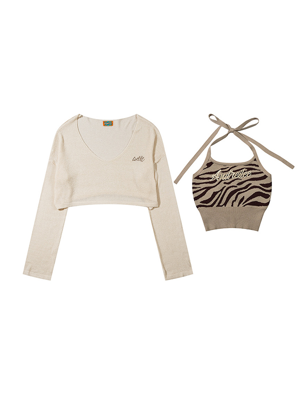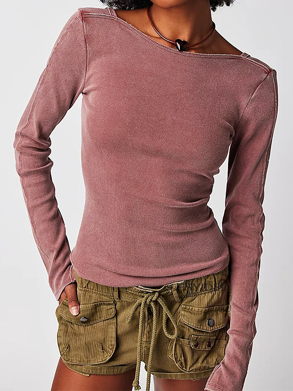 Vintage Portrait Print One Shoulder Backless Long Sleeve Knit