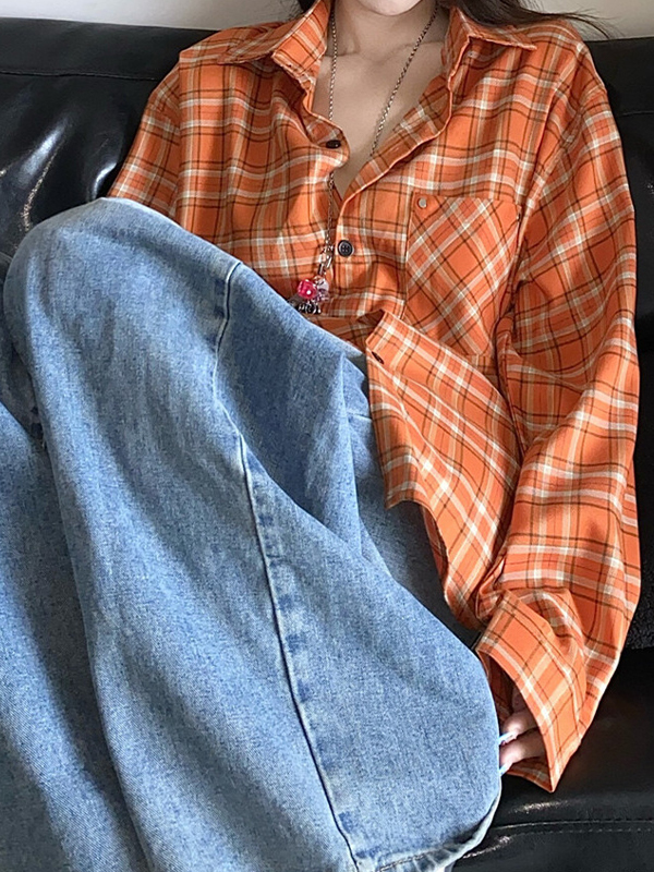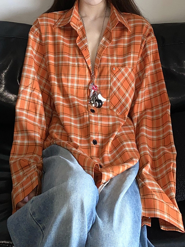 Vintage Contrast Plaid Print Long Sleeve Blouse