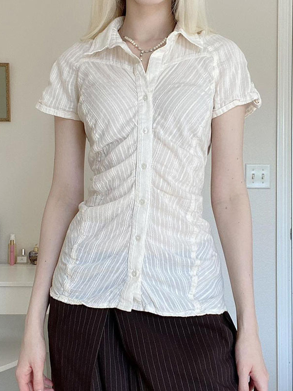 White Casual Simple Slim Fit Short Sleeves Shirts