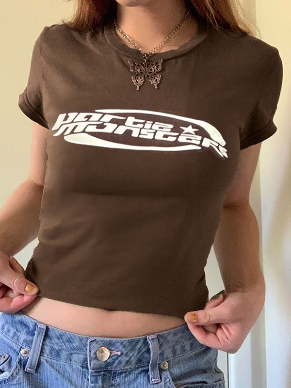 Number Letter Print Breasted Slim Long Sleeve Tee
