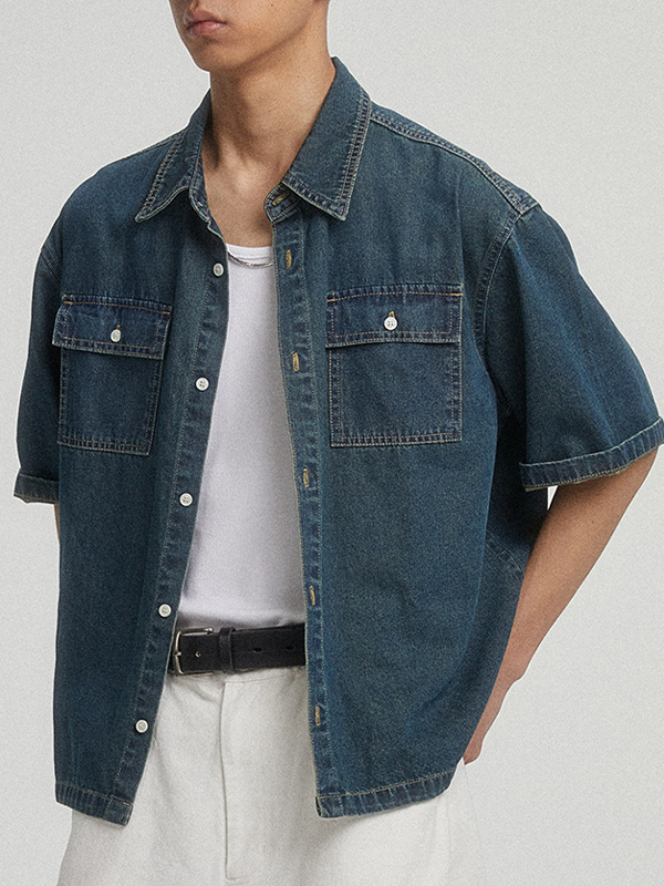Men’s Pocket Front Buttoned Short Sleeve Shirt
