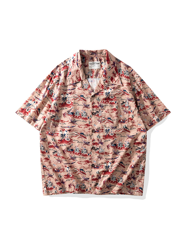Men’s Vintage Printed Short Sleeve Button Down Shirt