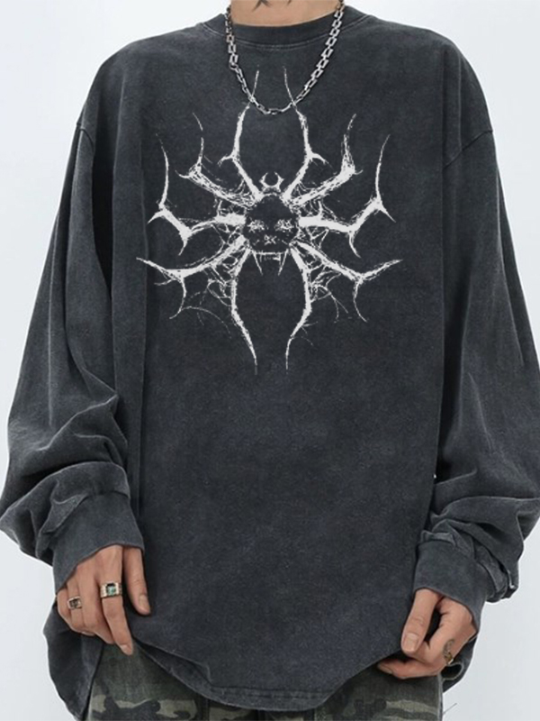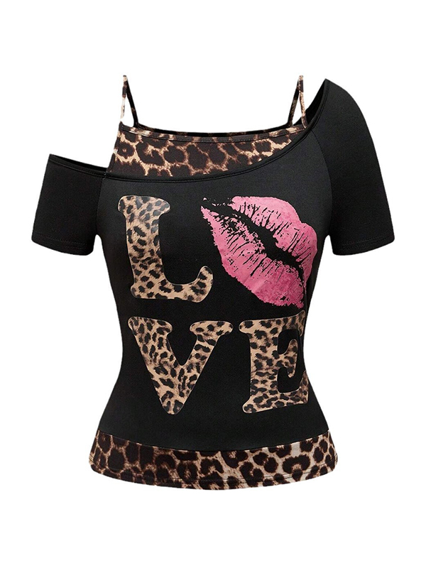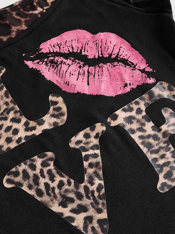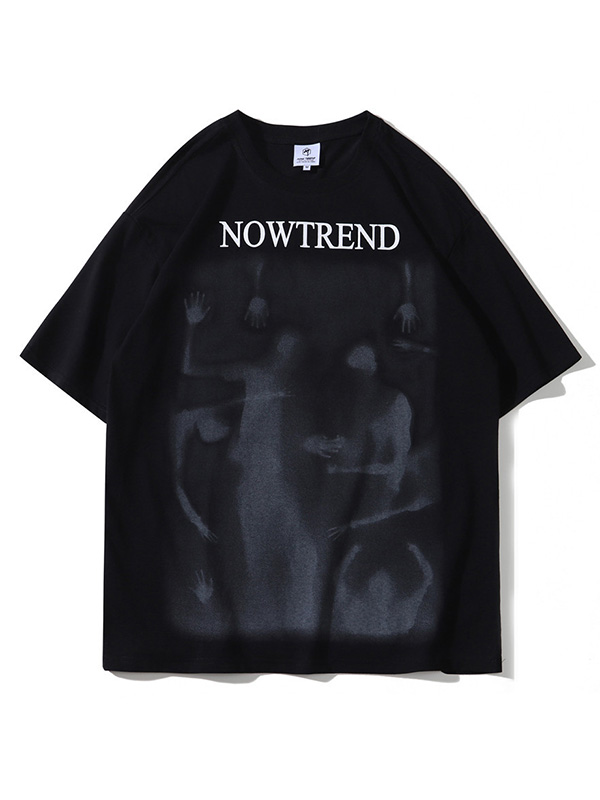 Dark Style Print Crew Neck Cropped Short Sleeve Tee