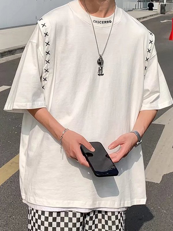 Men’s Embroidery Patchwork Short Sleeve Tee
