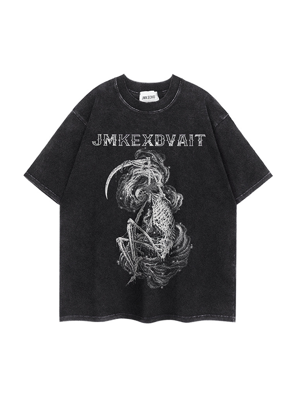 Men’S Dark Style Print Washed Oversized Short Sleeve Tee
