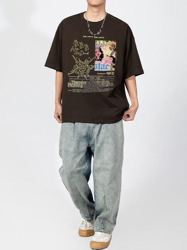 Men’s Abstract Letter Print Oversized Short Sleeve Tee