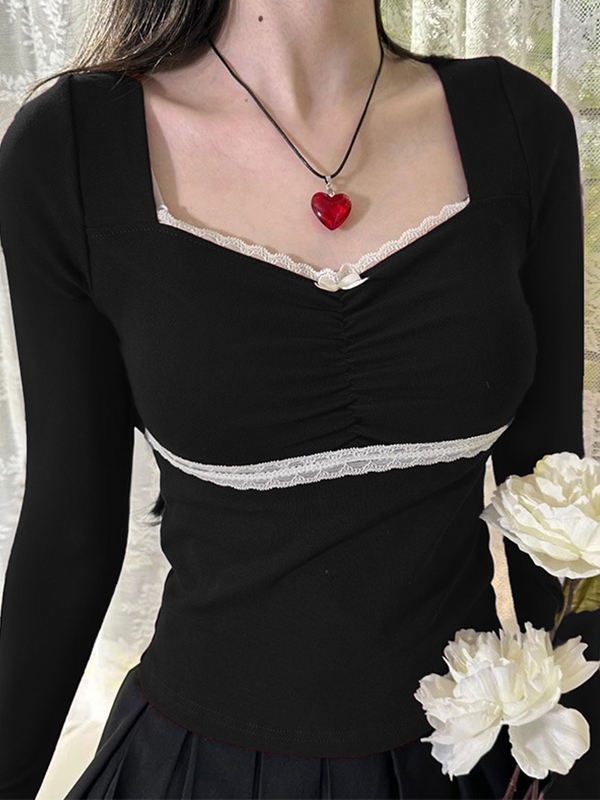 Solid Off Shoulder Irregular Slit Hem Long Sleeve Tee