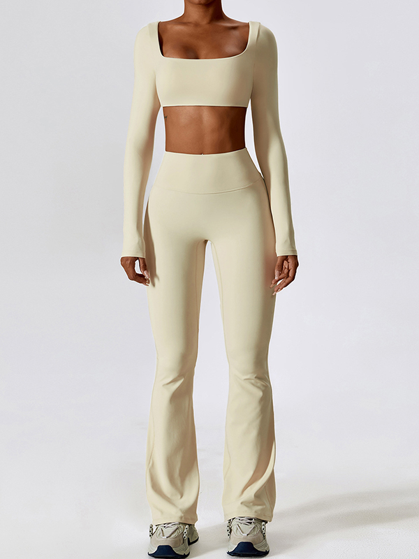 Solid Quick Dry Square Neck Cropped Active Top&Pants Set