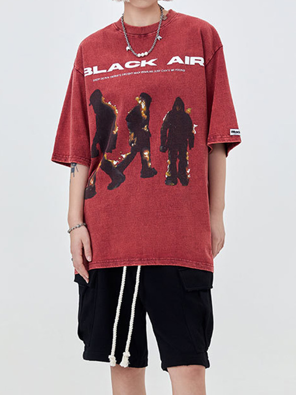 Style: Casual/Street/VintageFabric Content: CottonFit Type: Loose fitNeckline: Crew NeckSleeve Length: Short Sleeve
