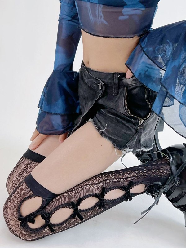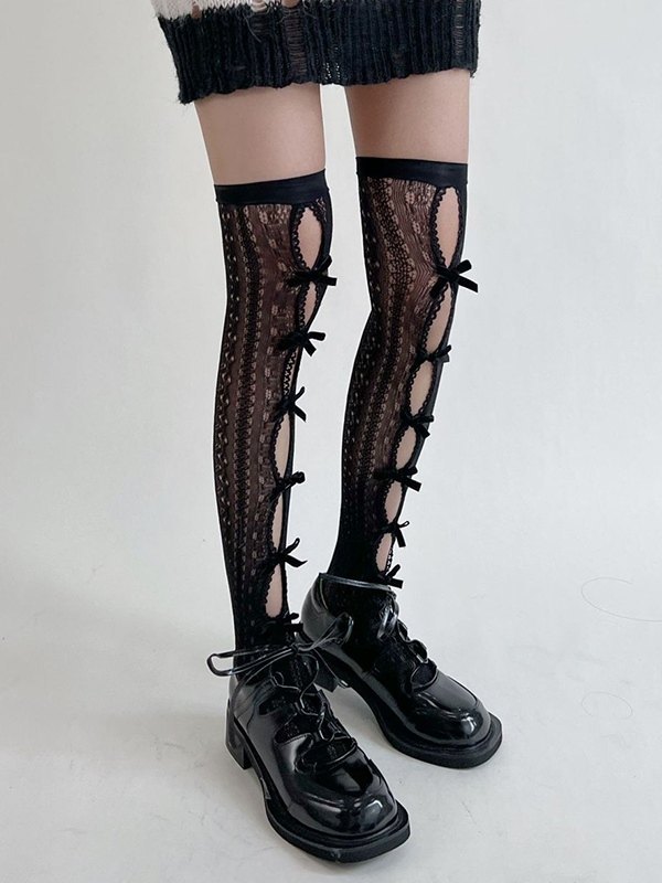 Be the first to review “Bow Embellish Cutout Lace Thigh High Socks”