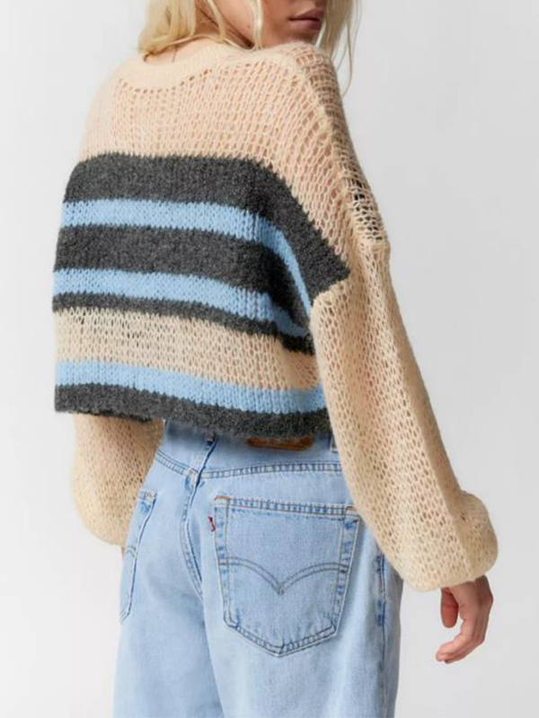 Be the first to review “Contrast Color Striped Loose Cropped Sweater”