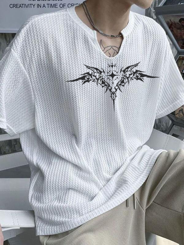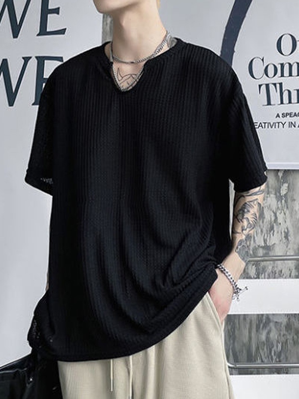 Men’s Solid Mesh Notched Neck Short Sleeve Tee