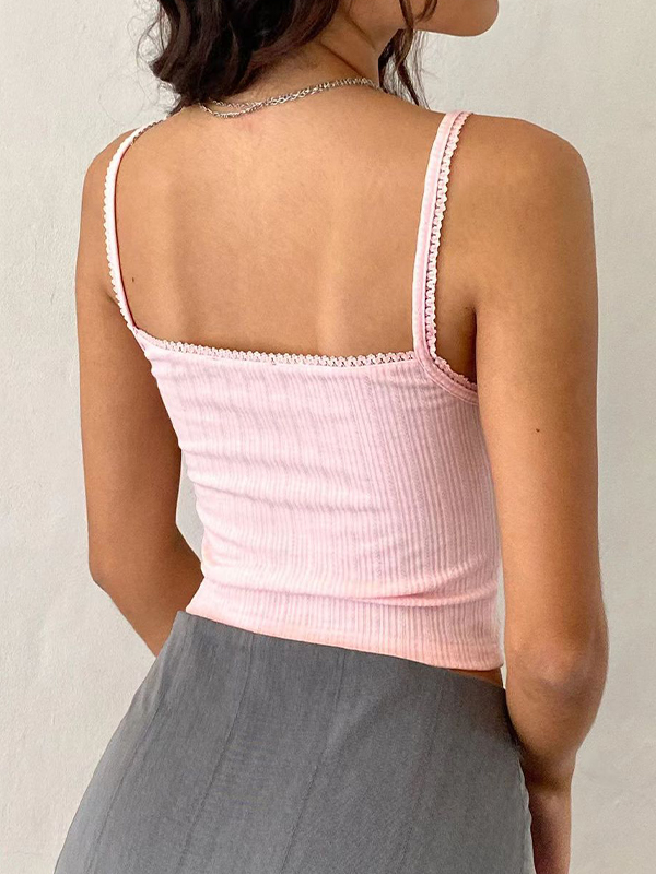 Plain Bow Lace Slim Fit Cami Top