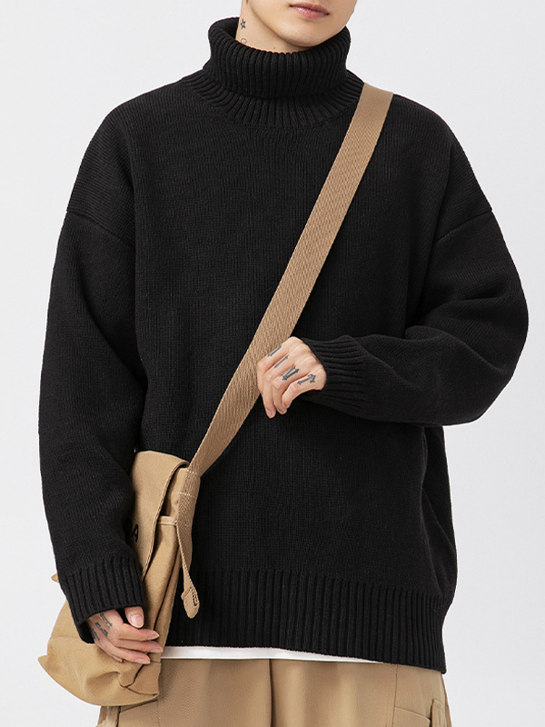 Solid Color High Collar Loose Lazy Style Sweater
